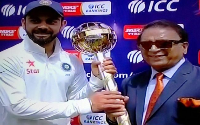 इसके साथ ही टीम इंडिया को इस साल टेस्ट रैंकिग में नंबर वन टीम रहने के कारण आईसीसी की ट्रॉफी के साथ 1 मिलियन डॉलर का चेक भी मिला. आईसीसी की ओर से सुनील गावस्कर ने कोहली को ये ट्रॉफी और चेक दिया.