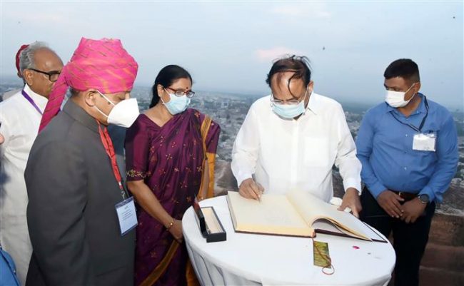 उपराष्ट्रपति राजस्थान की पांच दिवसीय यात्रा पर हैं.आज उन्होंने जैसलमेर युद्ध संग्रहालय देखा, जहां उनका स्वागत मेजर जनरल अजीत सिंह गहलोत ने किया। उपराष्ट्रपति ने थार रेगिस्तान की गर्म और कठिन परिस्थितियों में भी देश की सीमाओं की सुरक्षा करने के लिए भारतीय सेना की सराहना की.उन्होंने सैनिकों से कहा कि देश आश्वस्त रहता है कि दुश्मन के किसी भी दुस्साहस का हमारी सेना द्वारा मुंह तोड़ जवाब दिया जायेगा.