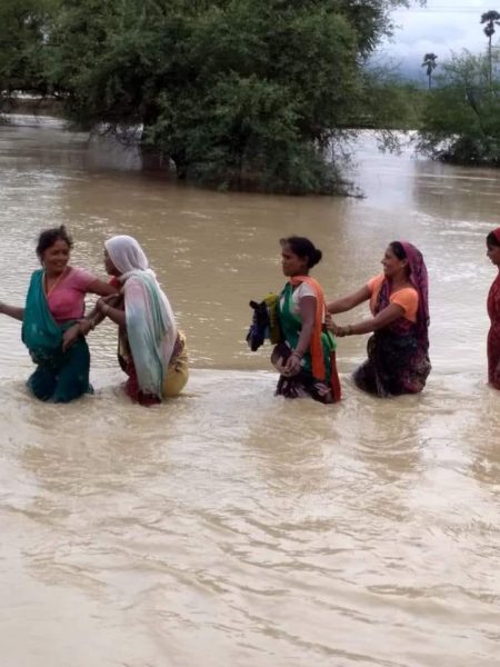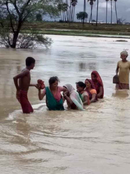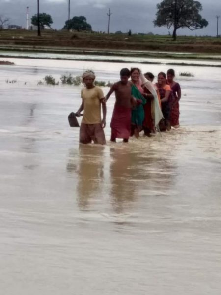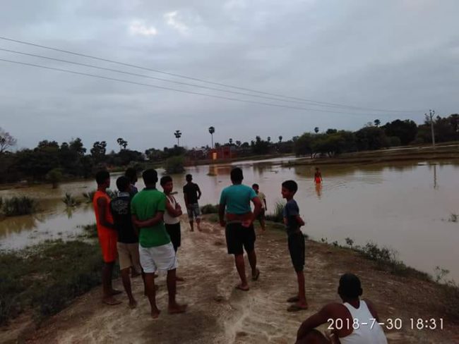 बरसात की पहली बारिश ने तीन घरवा टोला का रास्ता किया बंद, तैर कर पार करने को मजबूर ग्रामीण