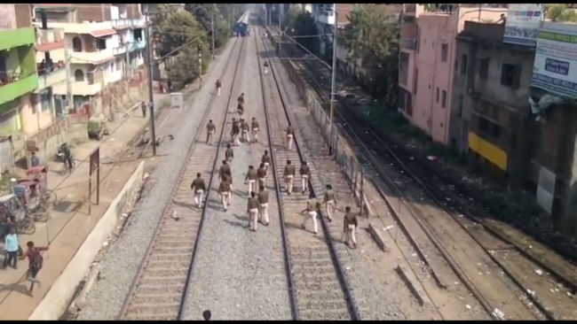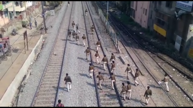 पटना, 28 फरवरी. पटना के राजेंद्रनगर इलाके के यार्ड के पास रेलवे के ITI अभ्यर्थियों ने अप और डाउन रेल लाइन को जाम कर जमकर प्र्दशन किया. जिसके बाद आरपीएफ पुलिस ने भीड़ को हटाने के लिए बल का प्रयोग करते हुए प्रदर्शन कर रहे छात्रों को खदेड़ा ,रेल ट्रैक जाम करने के आरोप में तीन अभियर्थियों को गिरफ्तार भी किया गया है.