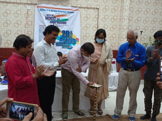 रंगसंस्था अभिनव एंड एक्टिव क्रिएटिव थिएटर(ऐक्ट) द्वारा आयोजित 20 दिवसीय थियेटर वर्कशॉप का आज से शुभारंभ हो गया. आगामी 6 अगस्त तक चलने वाले इस कार्यक्रम का उद्घाटन बतौर मुख्य अतिथि शहर के डॉ विजय कुमार गुप्ता व डॉ संगीता कुमारी गुप्ता ने मंगलम द वेन्यू में दीप प्रज्ज्वलित कर मंगलमय शुभारंभ किया. इस मौके पर विशिष्ट अथितियों के रूप में वरिष्ठ रंगकर्मी व रंग-गुरु चंद्रभूषण पांडेय,संस्था के संरक्षक तारकेश्वर शरण सिन्हा और प्रो नीरज सिंह ने भी संयुक्त रूप से दीप प्रज्ज्वलित किया.