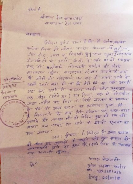 अपनी प्रथमिकी दर्ज करने पहुंचे पत्रकार और उनकी माँ को पहले तो GRP ने समझा कर वापस भेजना चाहा पर जब प्रथमिकी के लिए जिद्द की तो GRP थानाध्यक्ष ओम प्रकाश पासवान ने सिपाहियों को भेज संदिग्ध को खोजने का आदेश दिया लेकिन कुछ हाथ नही लगा. उन्होंने कहा कि मोबाइल लेकर अगर चोर भागे रहते तो हम तुरन्त पकड़ लेते. गहना और पैसा मिलना टेढ़ी खीर है. GRP प्रभारी के अनुसार गांव में सीमित आदमी और चौकीदार की वजह से किसी को पकड़ना आसान होता है जबकि शहर में स्टेशन पर हजारों भीड़ पता नही किन गांवों से आती है, जिसमे शरीफ के चोले में भी चोर और उचक्के होते हैं. ऐसे चोरों को पकड़ना मुश्किल होता है. रेल प्रशासन के इस जवाब से यह तो साफ हो गया कि रेल परिसर से लेकर रेल के डब्बों तक आप बिना किसी चेकिंग और टिकट के बेहिचक कहीं भी आराम से जा सकते हैं. तो ऐसे में रेल पुलिस का क्या काम?