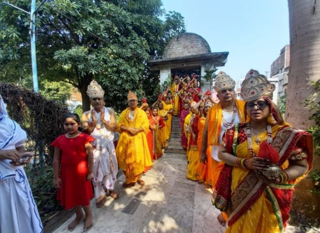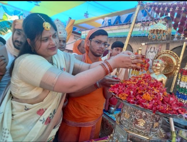आरा, 13अक्टूबर. जेल रोड स्थित श्री 1008 अतिशयकारी चन्द्रप्रभु दिगम्बर जैन मंदिर में चल रहे नव-दिवसीय महामहोत्सव में छठे दिन मंगलवार को श्री ज्वालामालिनी देवी माँ की नवीन रजत प्रतिमा के प्राण-प्रतिष्ठा को लेकर इन्द्र-इंद्राणीयो के द्वारा कलश यात्रा निकाली गयी. कलश यात्रा बड़े ही घूम-धाम से गाजे-बाजे के साथ मंदिर प्रांगण से निकलकर शिवगंज स्थित महावीर स्वामी जल मंदिर पहुँची वहाँ श्रद्धालुओं के द्वारा वेदी शुद्धिकर पुनः चन्द्रप्रभु मंदिर पहुँची. इस प्रकार प्राण-प्रतिष्ठा महोत्सव का विधिवत शुभारंभ हुआ.