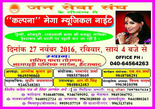 भोजपुरी गायिका कल्पना हैदराबाद में देंगी प्रस्तुति