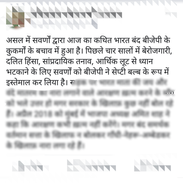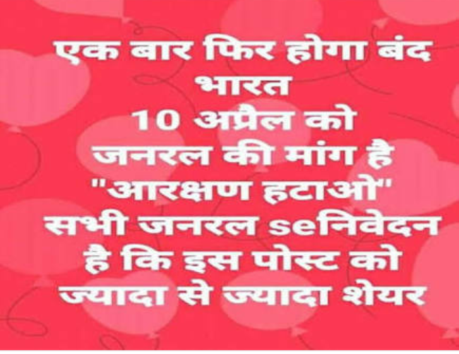 2. 2अप्रेल को दलितों के नाम पर हुए बंद से हुयी हानि से देश आहत था तभी सोशल मीडिया पर ये मेसेज फैलने लगा कि 10 अप्रैल को सवर्णों की तरफ से भारत बंद है.