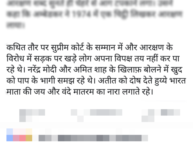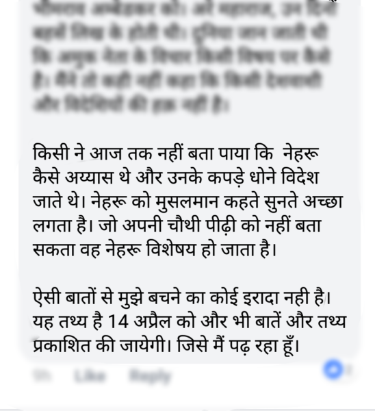 अभी 10 का भारत बंद को हुए 24 घण्टे भी नही बीते थे कि कुछ लोगों ने अपने कई पोस्ट कर गांधी और बाबा को गुटों में बांटने के साथ नेहरू की अय्याशी के बारे में पूछने लगे. साथ ही 14 को पुनः भारत बंद और 10 का जवाब देने की तैयारी जैसी चर्चाएं युवाओ की मानसिकता को हवा देने लगी. जाहिर है मुर्खता में लोग किसी अनजान हाथों की कठपुतली बन रहे हैं और ऐसे लोगों की मंशा साफ़ है कि वो लोग समाज में विद्वेष फैलाना चाह रहे हैं.
