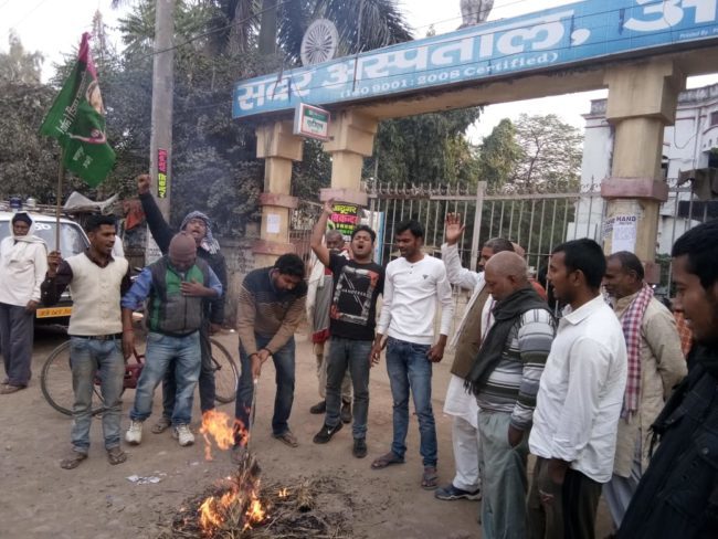 पुतला दहन कार्यक्रम की अध्यक्षता प्रखंड अध्यक्ष संतोष कुमार तथा संचालन युवा नेता सनोज यादव ने किया. सदर अस्पताल के मुख्य द्वार पर पुतला दहन का मुख्य कार्यक्रम आयोजित हुआ.