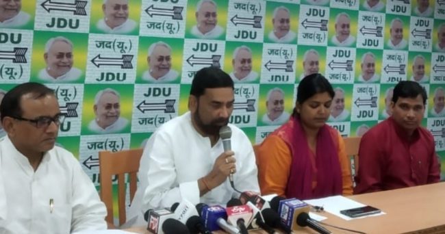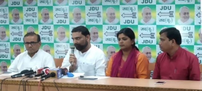 उन्होंने कहा कि राज्य के मुख्यमंत्री नीतीश कुमार द्वारा शराबबंदी कानून के जरिये राज्य एक बड़े बदलाव की ओर अग्रसर हुआ है. महिला उत्पीड़न के मामले घटे हैं. सड़क दुर्घटनायें कम हुयी हैं. घरों में खुशहाली आयी है, क्योंकि शराब पर होने वाले अपव्यय के स्थान पर घर में पैसे बच रहे हैं, जिससे बच्चों की शिक्षा, बुजुर्गों की चिकित्सा एवं परिजनों के जीवन आवश्यकताओं के लिए प्रयोग हो रहा है. दलितों पर केस ज्यादा होने का तेजस्वी यादव का आरोप निराधार एवं पूर्णतः बेबुनियाद है. जनता दल (यूनाईटेड) विशेष राज्य दर्जा की माॅंग पर कायम है. लेकिन तेजस्वी यादव बतायें कि जिस कांग्रेस के साथ वह महागठबंधन में हैं, उसने आजादी के बाद देश पर 50 वर्ष शासन किया. लेकिन भाड़ा, समानीकरण, सेस एवं राॅयल्टी में दोहरे मानदंड एवं बिहार को विशेष राज्य के दर्जे की माॅंग पर कांग्रेस की भूमिका क्या रही है?