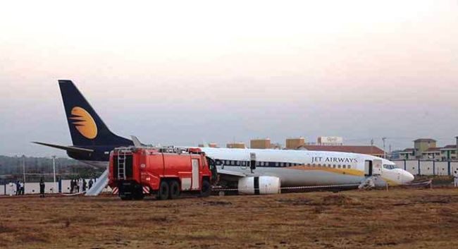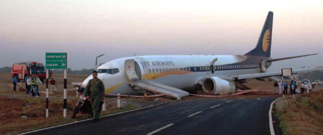 आज गोवा एयरपोर्ट पर जेट एयरवेज की फ्लाइट हादसे का शिकार हो गई. लेकिन गनीमत रही कि कोई बड़ा नुकसान नहीं हुआ. मंगलवार तड़के 4.40 में गोवा से मुंबई जाने वाली फ्लाइट का इंजन रनवे पर टेक ऑफ के वक्त अचानक बंद हो गया. इसके बाद ये विमान रनवे से फिसल गया. हादसे के तुरंत बाद विमान में सवार सभी यात्रियों को सुरक्षित उतार लिया गया.