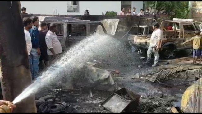 पटना सिटी, 28 फरवरी. पटना सिटी के आलमगंज थाना क्षेत्र के बजरंगपुरी इलाके में स्थित एक कार गैरेज में मंगलवार को अचानक भीषण आग लग गई. आगलगी की सुचना मिलते ही मौके पर फायर बिग्रेड की दो यूनिट पहुंची, जहां फायर ब्रिगेड के जवान और स्थानीय लोगो ने मिल कर किसी तरह आग पर काबू पाया. इस आग लगी की घटना में गैरेज में आधा दर्जन से ऊपर कार जलकर खाक हो गयी. आगलगी का कारण शार्ट शर्किट बताया जा रहा है. इस घटना में 20 लाख रूपये का नुकसान हुआ है.
