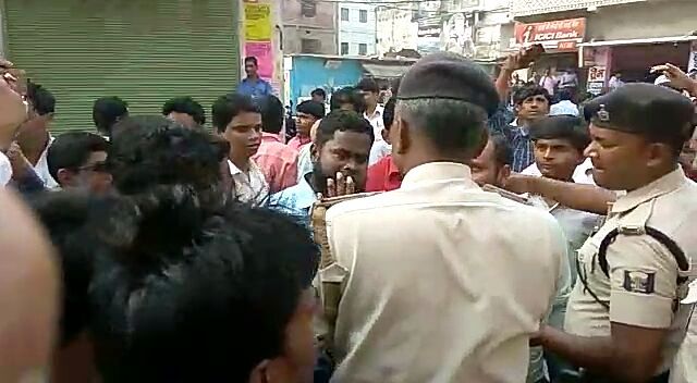इसके बाद पुलिस ने प्रदर्शन कर रहे लोगों पर बल प्रयोग किया जिससे इलाके में अफरातफरी मच गई. स्थानीय दुकानदार असामाजिक तत्वों द्वारा लूट पाट और तोड़ फोड़ के विरोध में प्रदर्शन कर रहे थे. नगर थाना क्षेत्र का शिव मंदिर चौक पुलिस छावनी में तब्दील है.