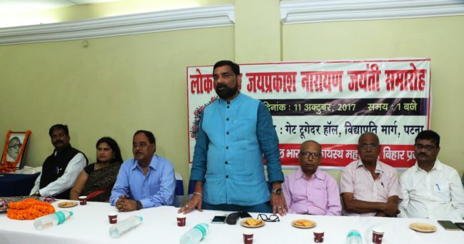 लोकनायक जय प्रकाश नारायण जी की 115 वीं जयंती पर अखिल भारतीय कायस्थ महासभा ने पटना में एक समारोह का आयोजन किया.  जयंती समारोह का उद्घाटन अखिल भारतीय कायस्थ महासभा के राष्ट्रीय कार्यवाहक अध्यक्ष और जदयू प्रवक्ता राजीव रंजन प्रसाद