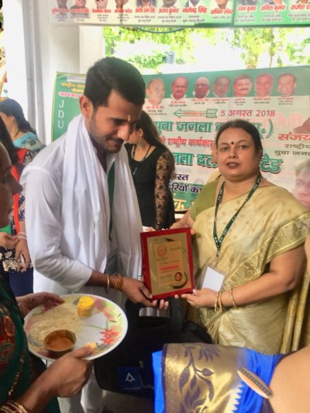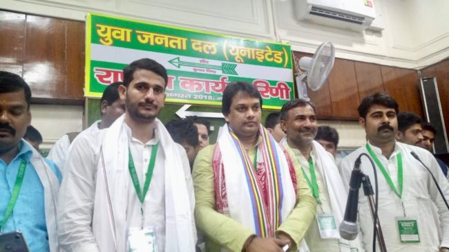जिसमें देश भर युवा जदयू के सभी प्रदेश अध्यक्ष सहित राष्ट्रीय पदाधिकारियों के हिस्सा लिया. राष्ट्रीय अध्यक्ष संजय कुमार राज्यसभा के संसद kc त्यागीं ‘ वशिष्ठ नारायण सिंह , हरिवंश नारायण सिंह ईत्यादि लोग मौजूद थ. बैठक में आये लोगों के माथे पर तिलक लगा कर गमछा, बैग ओर मोमेंटो से ज़ोरदार स्वागत किया गया.