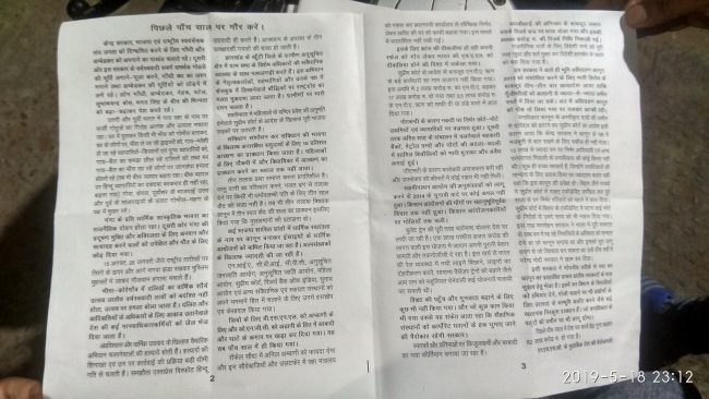 मेरा काम है पर्चा बाँटना अब आप इसे पढ़िए या फेंक दीजिये. हालांकि पर्चा बांटने वाले संगठन से कोई उम्मीदवार चुनाव मैदान में खड़ा तो नही है लेकिन एक पार्टी विशेष का विरोध पुरजोर तरीके से पर्चे पर किया गया है. अब देखना यह होगा कि इसपर चुनाव आयोग क्या करवाई करती है.