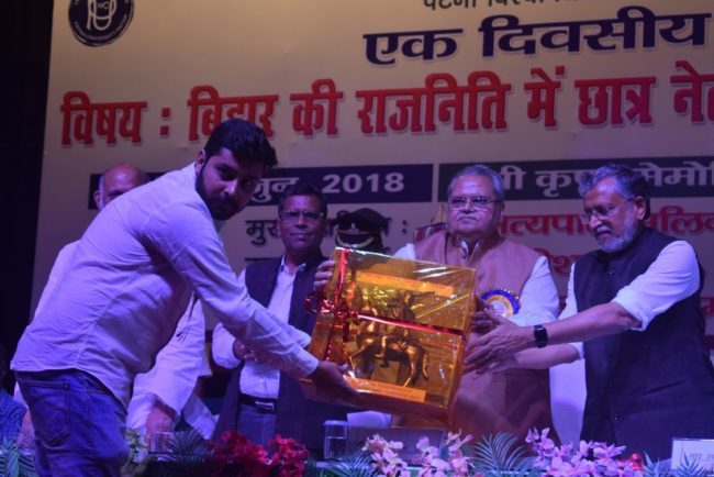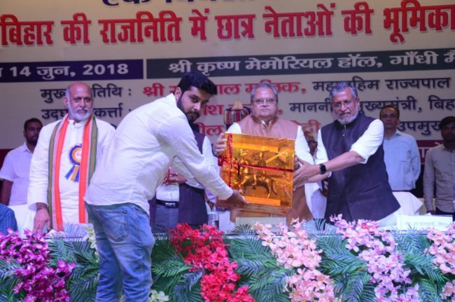 साथ में मंचासीन बिहार के उपमुख्यमंत्री माननीय सुशील मोदी, पूर्व छात्र नेता सह कांग्रेस बिहार इकाई के पूर्व अध्यक्ष अनिल शर्मा, पटना विश्वविश्वविद्यालय के कुलपति रासबिहारी सिंह सहित दर्जनों शिक्षाविद मौजूद थे.