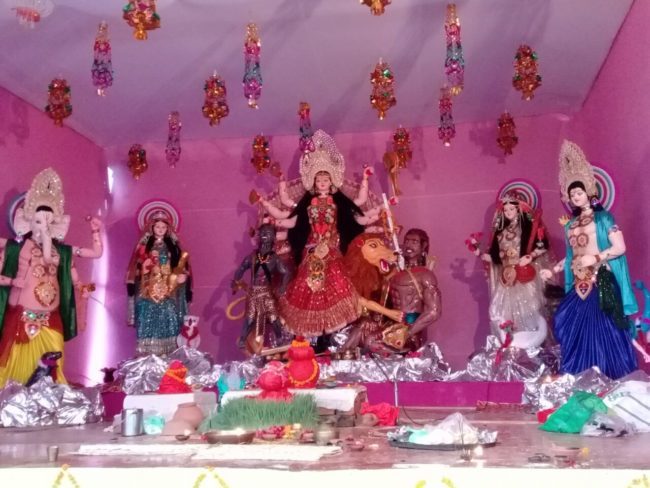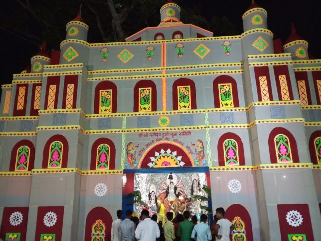 स्टेशन रोड में नवोदय दुर्गा पूजा समिति द्वारा निर्मित माँ दुर्गा का प्रतिमा व विशाल पंडाल आकर्षण का केन्द्र बनी है .