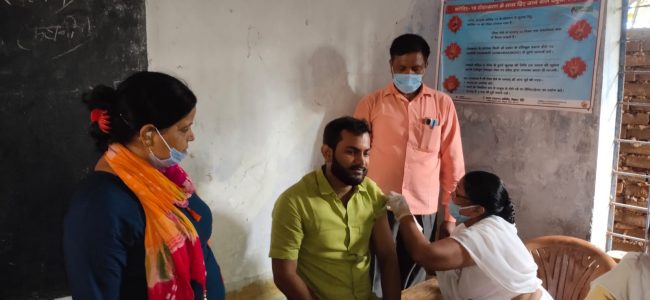 कोरोना टीकाकरण अभियान के तहत कोइलवर के काजी वहीद अशरफ मध्य विद्यालय टीकाकरण केंद्र पर शनिवार को भी टीकाकरण किया गया. इस दौरान सुबह से ही महिलाओं व परुषों की भीड़ इकट्ठी हो गई. टीकाकरण के तहत पटना जिला युवा भाजपा जिलाध्यक्ष अर्पित कुमार दिवाकर ने कोरोना वैक्सीन का पहला डोज लिया. कोविड-19 का टीका लगवाने के बाद जिलाध्यक्ष दिवाकर ने कहा कि कोरोना वायरस का संक्रमण अभी खत्म नहीं हुआ है इसलिए यह आवश्यक है कि सावधानी बरती जाए.