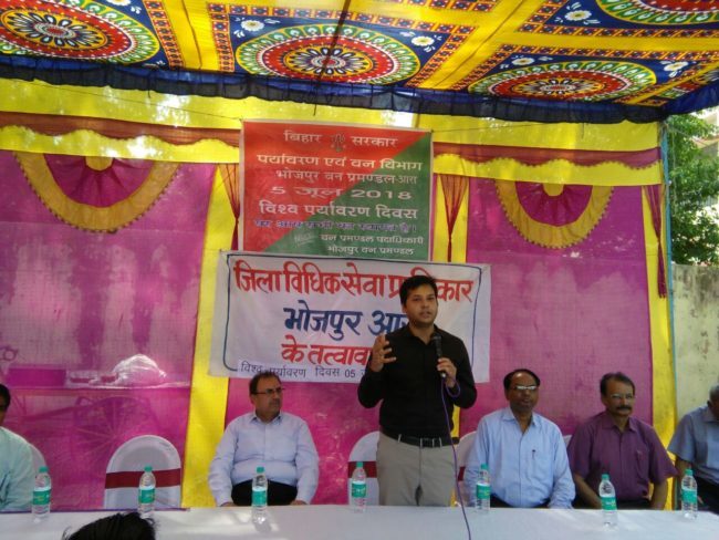 जिला विधिक सेवा प्राधिकार  के तत्वाधान में विश्व पर्यावरण दिवस के मौके पर मंगलवार को कृषि विज्ञान भवन में वृक्षारोपण किया गया. इस मौके उपस्थित लोगों को संबोधित करते हुए जिला न्यायाधीश अमरेंद्र पति त्रिपाठी और जिला पदाधिकारी भोजपुरी संजीव कुमार ने ने कहा कि पर्यावरण को बचाने के लिए व्यापक जन आंदोलन की जरुरत है. उन्होंने अपने संबोधन में कहा कि जीव-जंतु, पशु-पक्षी और मिट्टी-जलवायु का गहरा संबंध है. ग्लोबल वार्मिंग और लगातार वृक्षों की कटाई और प्रदूषण ने पर्यावरण को अत्यधिक क्षति पहुंचाया है.