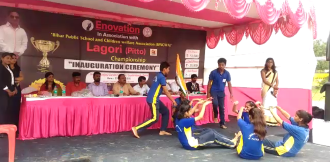 इस कार्यक्रम का उद्घाटन बिहार पब्लिक स्कूल एंड चिल्ड्रेन वेलफेयर एसोसिएशन के अध्यक्ष डॉ० डी के सिंह, ने किया. इस मौके पर प्रतियोगिता के ब्रांड अम्बेसडर आकाश सुलभ, शैलजा वर्मा, डॉ राकेश राजहंस, सुनील कुमार झा (अधिवक्ता, पटना उच्च न्यायालय), हरेश कुमार सिंह, रणजीत कुमार श्रीवास्तव आदि मौजूद रहें. सबों ने इस प्रतियोगिता की मुक्त कंठ से प्रशंसा की तथा इस प्राचीन खेल लगोरी अर्थात पिट्टो को कबड्डी की तरह प्रचलित करने एवं नेशनल गेम बनाने की कवायत की.