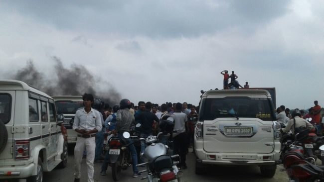 JP सेतु को जाम करते राजद समर्थक