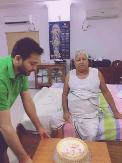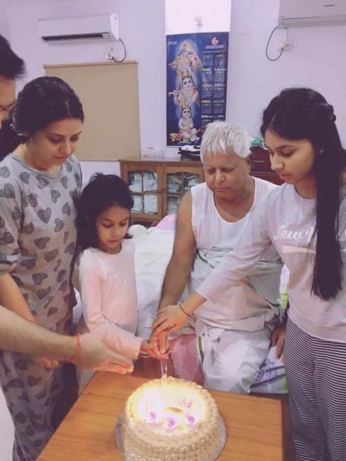 रात 12 बजे की ये तस्वीरें हैं, जब लालू को अचानक नींद से जगाकर बच्चों ने केक कटवाया और कहा Happy Birthday.
