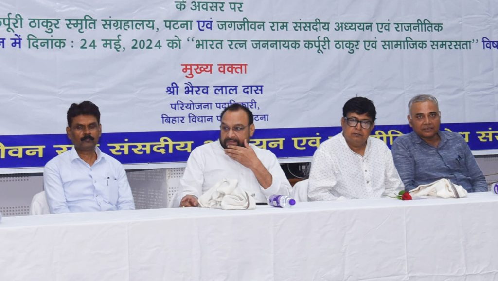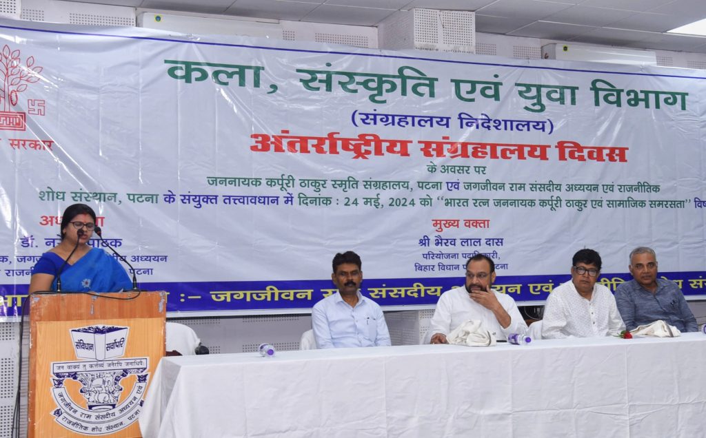 पटना।। अंतराष्ट्रीय संग्रहालय दिवस के अवसर पर शुक्रवार को जननायक कर्पूरी ठाकुर स्मृति संग्रहालय, पटना एवं जगजीवन राम संसदीय अध्ययन एवं राजनीतिक शोध संस्थान, पटना के संयुक्त तत्वावधान में जगजीवन राम संसदीय अध्ययन एवं राजनीतिक शोध संस्थान, पटना के सभागार में “भारत रत्न जननायक कर्पूरी ठाकुर एवं सामाजिक समरसता” विषय पर व्याख्यान का आयोजन किया गया.