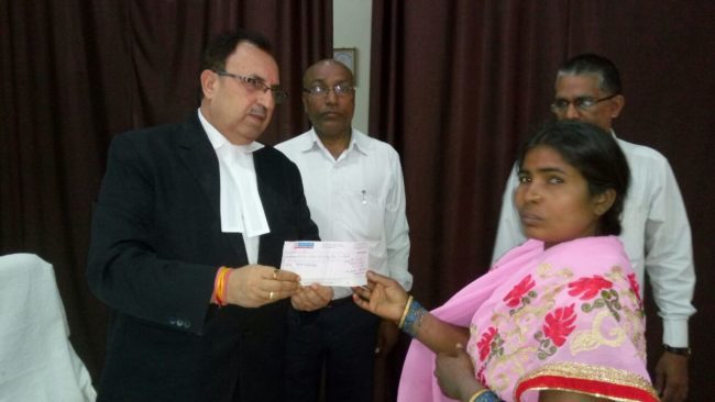 जिला एवं सत्र न्यायाधीश सह जिला विधिक सेवा प्राधिकार के अध्यक्ष अमरेंद्र पति त्रिपाठी ने दावा के वाहन दुर्घटना कांड 43/17 एवं 45/17 की आवेदिकाओ मीरा देवी और आशा देवी को क्रमशः 4,50,000/- और 19,50,000/- का चेक प्रदान किया. इस अवसर पर जिला विधिक सेवा प्राधिकार के सकल देव राय भी उपस्थित थे. इस अवसर ओर उन्होंने 14 अप्रैल 2018 को लगने वाले लोक अदालत के बारे में बताया. उन्होंने कहा कि लोक अदालत में वादों का निष्पादन बहुत जल्द होता है.