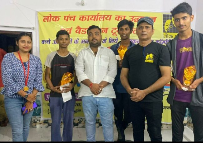 पटना: लोक पंच कार्यालय का उद्घाटन एवं बैडमिंटन टूर्नामेंट संपन्न हुआ.लोक पंच के उपाध्यक्ष कुमार रोहित ने फीता काटकर लोक पंच कार्यालय का उद्घाटन किया एवं बैडमिंटन के विजेताओं को स्मृति चिन्ह एवं कैश देकर सम्मानित किया.