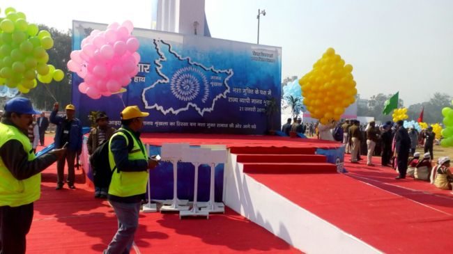 बिहार में शराबबंदी के समर्थन में बनाए जाने वाले मानव श्रृंखला को लेकर गांधी मैदान में विभिन्न स्कूल और कॉलेजों के साथ कई विभागों के लोग मानव श्रृंखला बनाने के लिए निकल पड़े है ,जगह जगह लोगों में उल्लास देखा जा रह है .हमारे विशेष संवाददाता अमित वर्मा भी गांधी मैदान से जुड़े है और पल पल की तस्वीर आप तक हम पहुंचा रहे है गांधी मैदान में मानव श्रृंखला बननी शुरू हो गई है .शहर की दीवालों को भी सजाया गया है और नशा मुक्ति के संदेश दिए जा रहे हैं .