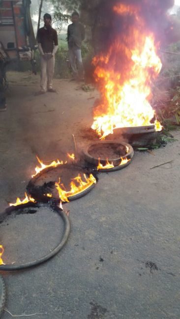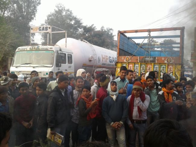 ड्राइवर ट्रक लेकर फरार ,लोगों ने किया सड़क जाम
