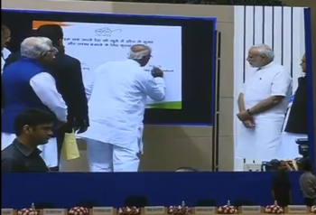 पीएम नरेन्द्र मोदी ने दिल्ली के विज्ञान भवन में स्वच्छता अभियान के एक कार्यक्रम में हिस्सा लेते हुए कहा कि लोग तय करे कि हम हम गंदगी नहीं करेंगें . मोदी ने कहा कि हमारा मकसद होना चाहिए की वेस्ट से वेल्थ कैसे बनाए. हमें हमारे प्राकृतिक संसाधनों का संतुलित उपयोग करने की दिशा में बल देना होगा. उज्ज्वला योजना भी स्वच्छा का ही एक अभियान है.शौचालय बनाने के काम में तेजी आई है. हम लोगों को तैयार करें और सारे लोग साथ -साथ सफाई योजना को आगे बढ़ाये.इस मौके पर प्रधानमंत्री ने स्वच्छता शपथ पर भी हस्ताक्षर किया .कार्यक्रम में कई राज्यों के मुख्यमंत्रियों के साथ केंद्रीय शहरी विकास मंत्री वैंकैया नायडू भी मौजूद थे.