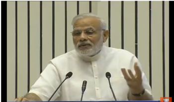 दिल्ली के विज्ञान भवन में स्वच्छता अभियान के एक कार्यक्रम में PM नरेन्द्र मोदी