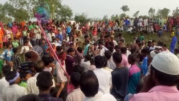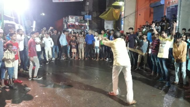 तजिया जुलूस में प्रदर्शन करते युवक, मौत के बाद जुटी भीड़
