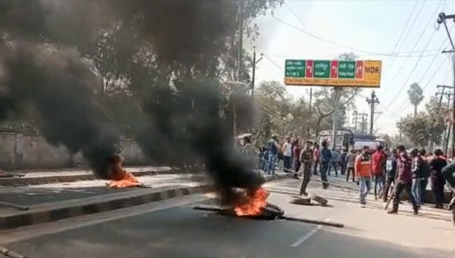 दूसरे दिन सुबह में आईजीआईएमएस में मंटू शर्मा के शव का पोस्टमार्टम कराने के बाद प्रशासन परिवार वालों के हवाले कर दिया. इसके बाद परिवार वाले मंटू की लाश के साथ घर के सामने मुख्य सड़क पटना खगौल को जाम कर प्रदर्शन करने लगे. हत्या के विरोध में मृतक के परिजन एवं आक्रोशित लोगों ने सड़क पर टायर आदि जलाकर आगजनी करना शुरू कर दिया. सड़क जाम हंगामा से शहर में अफरा तफरी का माहौल बना हुआ रहा आक्रोशित लोगों की मांग कर रहे थे कि जल्द से जल्द हत्या में शामिल अपराधियों की गिरफ्तारी की जाए. साथ में लापरवाह पुलिस पदाधिकारियों की करवाई की मांग भी करते रहे. करीब 12:30 बजे दिन से लेकर 5:30 बजे तक पटना खगौल मुख्य मार्ग को दोनों की लाश के साथ सड़क जाम कर प्रदर्शन के दौरान वहां नेता प्रतिपक्ष विजय कुमार सिन्हा पूर्व मंत्री डॉक्टर प्रेम कुमार पूर्व मंत्री नीरज कुमार बबलू बिधायक संजय सरावगी पवन यादव समेत बीजेपी के कई विधायक पहुंचे. नेता प्रतिपक्ष ने मृतक के परिवार वलों और समर्थकों को आश्वासन दिया है कि सरकार और प्रशासन जल्द से जल्द हत्यारों को गिरफ्तार करें अन्यथा बीजेपी इस मामले को सड़क से लेकर सदन तक उठाएगी.
