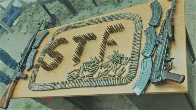 दो एके-47 राइफल के साथ,बड़ी संख्या में कारतूस बरामद