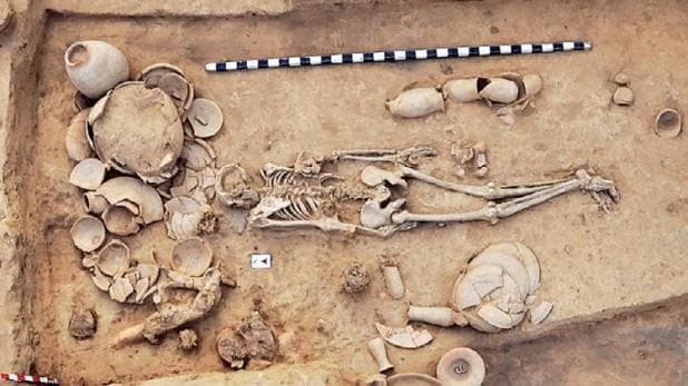 दो महिलाओं के कंकाल कुछ महीने पहले टीला संख्या 7 (भारतीय पुरातत्व सर्वेक्षण द्वारा आरजीआर 7 नामित) में पाए गए थे. माना जाता है कि यह लगभग 5,000 वर्ष पुराना है. भारतीय पुरातत्व सर्वेक्षण (एएसआई) के अधिकारियों ने बताया कि एक गड्ढे में कंकाल के बगल में दबे हुए बर्तन और अन्य कलाकृतियां मिलीं, जो हड़प्पा सभ्यता में अंतिम संस्कार संबंधी कर्मकांड का हिस्सा थीं.