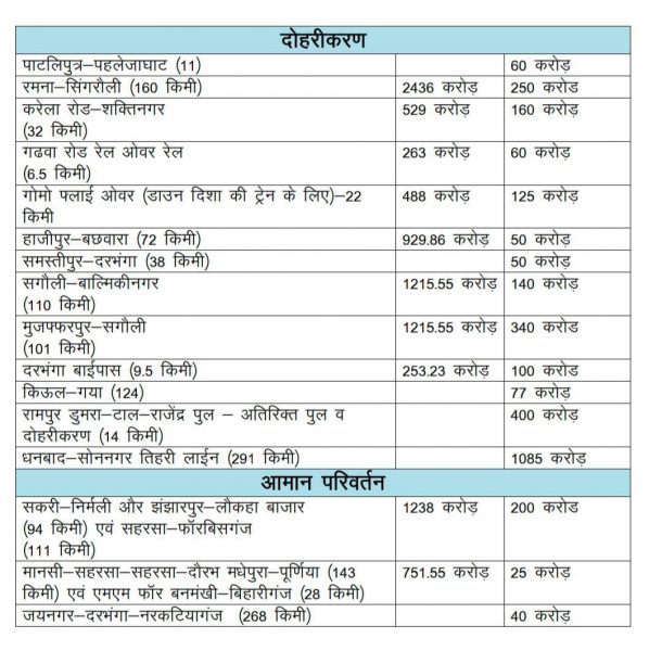 • दोहरीकरण परियोजना के लिए 3028 करोड़ रूपए ।