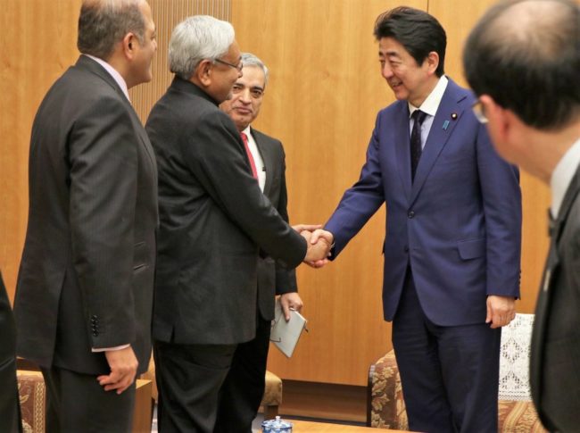 इसके पश्चात् मुख्यमंत्री नीतीश कुमार की जापान के प्रधानमंत्री शिंजो अवे से सौहार्द्रपूर्ण वातावरण में मुलाकात हुई। जापान के प्रधानमंत्री ने मुलाकात के क्रम में भारत और जापान के बेहतर रिश्तों पर चर्चा करते हुये कहा कि दोनों देशों के संबंध मैत्रीपूर्ण रहे हैं। मुख्यमंत्री नीतीश कुमार ने जापान आमंत्रण के लिये उन्हें धन्यवाद दिया और कहा कि बिहार न्याय के साथ विकास के पथ पर अग्रसर है। उन्होंने जापान के प्रधानमंत्री से अनुरोध किया कि वे जब भी भारत आयें तो अपने बहुमूल्य समय में से कुछ समय बिहार के लिये अवश्य निकालें।