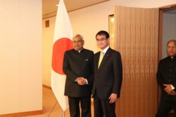 जापान के प्रधानमंत्री से मुलाकात के पश्चात मुख्यमंत्री नीतीश कुमार की जापान के विदेश मंत्री तारो कोनो से मुलाकात हुयी और दोनों देशों के परस्पर संबंधों पर विस्तृत चर्चा हुई। चर्चा के क्रम में बिहार से जापान के बीच सीधी विमान सेवा के संबंध में भी चर्चा हुई। मुख्यमंत्री ने कहा कि इससे जापान के नारा और बिहार के आपसी संबंध और मजबूत होंगे एवं दोनों देशों के पर्यटक यात्रा कर सकेंगे। मुख्यमंत्री ने कहा कि बिहार में युवाओं की संख्या ज्यादा है और यहॉ के युवा मेधावी और मेहनती हैं। अगर बिहार में इन्डस्ट्रीयल सेंटर बनता है तो काफी अच्छा होगा और लोगों के लिये रोजगार के नये अवसर पैदा होंगे। जापानी निवेशकों को भी आकर्षित करने के संबंध में सार्थक चर्चा हुई।
