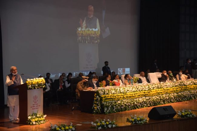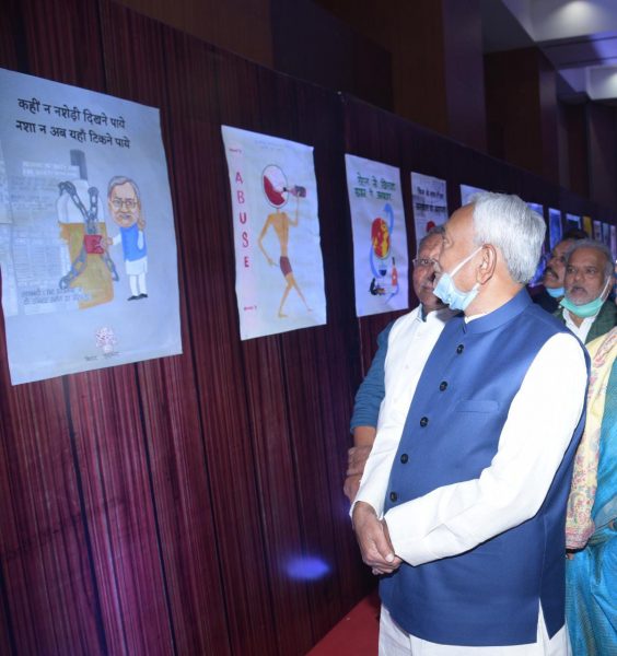 पटना, 26 नवम्बर 2021:- मुख्यमंत्री नीतीश कुमार आज सम्राट अशोक कंवेन्शन केंद्र के कार्यक्रम के शुरुआत के पूर्व सम्राट अशोक कंवेन्शन केंद्र परिसर में मुख्यमंत्री ने मद्य निषेध प्रचार-प्रसार अभियान हेतु मद्य निषेध रथ एवं प्रचार बसों को हरी झंडी दिखाकर रवाना किया.मुख्यमंत्री ने ज्ञान भवन के निचले तल्ले में नशा मुक्ति पर पेंटिंग, कोलॉर्ज एवं टेराकोटा प्रदर्शनी का उद्घाटन तथा अवलोकन किया। अवलोकन के पश्चात मुख्यमंत्री के समक्ष ‘नशा मुक्त परिवार खुशहाल परिवार’ पर आधारित शैडो डांस लघु फिल्म का प्रदर्शन किया गया।कार्यक्रम की शुरुआत में मद्य निषेध, उत्पाद एवं निबंधन विभाग के अपर मुख्य सचिव के0के0 पाठक ने मुख्यमंत्री का स्वागत पौधा एवं स्मृति चिन्ह भेंट कर किया।