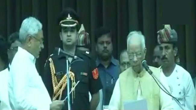 राज्यपाल केसरी नाथ त्रिपाठी ने राजभवन के राजेन्द्र मंडप में नीतीश कुमार और सुशील मोदी को शपथ दिलाई. नीतीश कुमार 28 जुलाई को बिहार विधानसभा में बहुमत साबित करेंगे.
