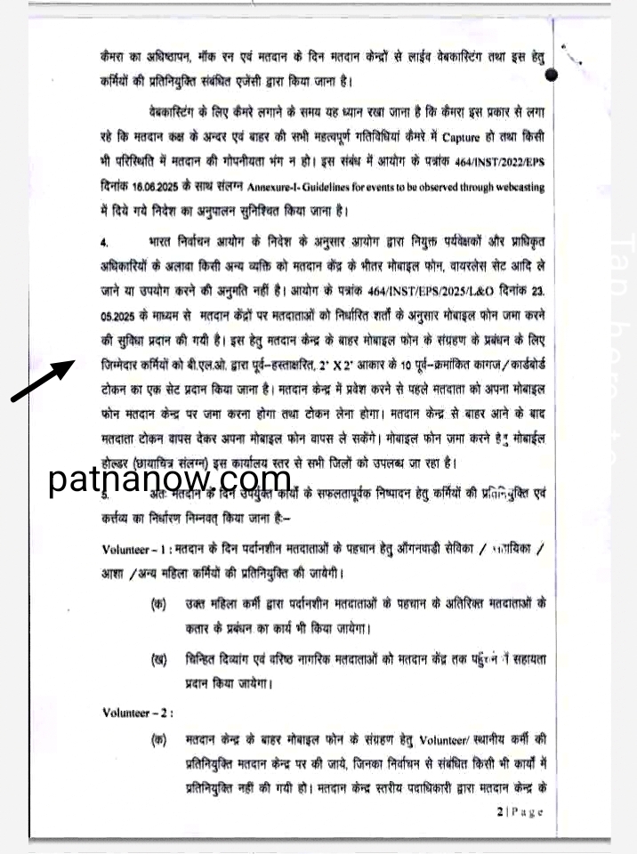 अब एक और महत्वपूर्ण जानकारी चुनाव आयोग की तरफ से दी गई है. चुनाव आयोग के नए आदेश के मुताबिक वोटिंग के दौरान कोई भी वोटर मोबाइल फोन लेकर वोट डालने नहीं जा सकेंगे. मतदान केंद्र के बाहर वोटर को अपना मोबाइल फोन जमा करना होगा. इसके बदले उन्हें टोकन मिलेगा, उसके बाद ही वह मतदान केंद्र के भीतर जा सकेंगे और अपना वोट डाल सकेंगे.