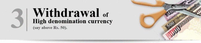 - सभी तरह की ऊंचे मूल्य की करंसी (50 रुपये से ज्यादा की मुद्रा) वापस लिए जाएं.