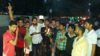 पकिस्तान द्वारा उरी में आतंकी घुसपैठ के विरोध में छात्र संगठन एनएसयुआई ने पाकिस्तान के झंडे को जज मोड़ के पास फूंका छात्रों ने पाकिस्तान मुर्दाबाद,पकिस्तान अपनी बुजदिली बंद करो जैसे कई नारे लगाकर अपनी नाराजगी ब्यक्त की. गौरतलब है कि पाकिस्तानी आतंकियों ने भारतीय सीमा में घुसपैठ कर उरी में 17 सैनिकों को सोते समय मार कर अपनी बुजदिली का परिचय दिया. छात्र संगठन से जुड़े लोगों ने पकिस्तान को अपनी बुजदिल हरकतों से बाज आने को कहा वरना अंजाम भुगतने को तैयार रहे पाकिस्तान. छात्रों ने पाकिस्तानी झंडे को जलाने के साथ- साथ भारत के प्रधानमंत्री तथा गृहमंत्री से त्वरित जवाबी कार्रवाई करने की मांग भी की. पाकिस्तानी झंडे को जलाने के इस दल में संगठन से शामिल लोगों में एनएसयुआई के विश्वविद्यालय अध्यक्ष अभिषेक द्विवेदी,दुलदुल सिंह,धनंजय सिंह,राणा सिंह,राज,राहुल तिवारी,कृष्णा हरि, नीरज, विकास,अंशु,चन्दन सिंह,सुमित,सोनू,कन्हैया,संजय सिंघानिया,शुभम, और प्रद्युम्न के साथ कई लोग शामिल थे.