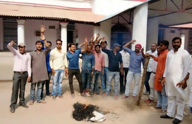 झूठे आरोप लगाने के खिलाफ महाराजा कॉलेज के प्राचार्य का पुतला दहन