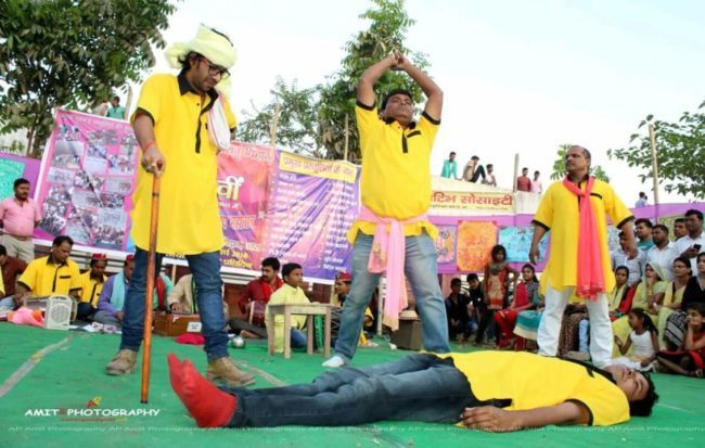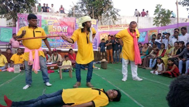 आरा, 19 मार्च. हर सप्ताह रविवार को नुक्कड़ नाटक की प्रस्तुति कर वर्तमान मुद्दों पर नाटक के जरिये आवाज उठाने वाले आरा रंगमंच की 50वी नुक्कड़ नाट्य प्रस्तुति रविवार को गबरघिचोर नाटक से हुई.