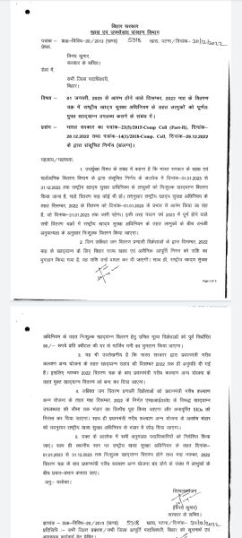 राष्ट्रीय खाद्य सुरक्षा अधिनियम के नए आदेश के तहत लाभार्थियों को मुफ्त में ही अनाज मिलना है चाहे वितरण चक्र कोई भी हो. सचिव ने अपने पत्र में स्पष्ट किया है कि जिन डीलरों ने दिसंबर के अनाज उठाव के एवज में बिहार राज्य खाद्य एवं असैनिक आपूर्ति निगम को राशि का भुगतान कर दिया है वो राशि उन्हें वापिस कर दी जाएगी. डीलरों को आशंका है कि उनकी राशि न जाने कब लौटाई जाए.