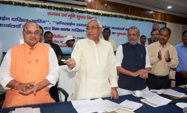 पटना (ब्यूरो रिपोर्ट) | सोमवार को बिहार राजस्व एवं भूमि सुधार विभाग द्वारा आयोजित “ऑनलाइन दाखिल खारिज, ‘ऑनलाइन लगान भुगतान एवं निबंधन कार्यालयों को अंचल कार्यालयों से संबद्ध कर Suo Motto दाखिल खारिज” सुविधा का श्री गणेश हो गया. मुख्यमंत्री नीतीश कुमार ने मुख्यमंत्री सचिवालय स्थित संवाद में रिमोट के माध्यम से इसका शुभारंभ किया.
