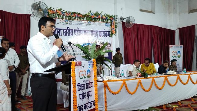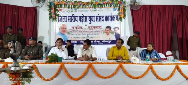 आरा,27 फरवरी. नेहरू युवा केंद्र भोजपुर द्वारा हर प्रसाद दास जैन महाविद्यालय आरा के सभागार में जिला स्तरीय पड़ोस युवा संसद कार्यक्रम का आयोजन किया गया जिसकी अध्यक्षता के० के० सिंह, उपनिदेशक नेहरू युवा केंद्र संगठन, पटना ,बिहार ने की. कार्यक्रम में मुख्य अतिथि के रूप में केंद्रीय ऊर्जा मंत्री, भारत सरकार, आर० के० सिंह