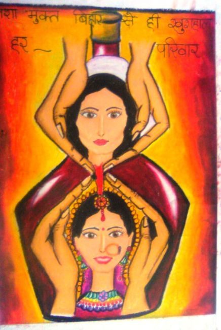 नशा मुक्ति अभियान को लेकर पटना जिला प्रशासन की ओर से जन चेतना जागृत करने के उदेश्य से स्थानीय बच्चों की चित्रकला प्रदर्शनी का आयोजन इको पार्क में किया गया जिसमें बच्चों ने अपने अन्दर की प्रतिभा को रंगों के जरिये व्यक्त किया ही साथ ही नारे भी लिखे. प्रमुख नारों में बच्चों ने अपने कोमल भावनाओं को व्यक्त किया. हम सब का यही है नारा शराब मुक्त हो बिहार हमारा,शराब को छोड़ दो अपने जीवन को मोड़ दो,नशा का जो हुआ शिकार उजड़ा उसका घर परिवार. जिलाधिकारी संजय कुमार अग्रवाल ने चित्रों का अवलोकन कर बताया कि यह हमारी आनेवाली पीढ़ी है जो स्वस्थ समाज के निर्माण की दिशा में महत्वपूर्ण भूमिका अदा करेंगे. प्रतियोगिता का आयोजन दो श्रेणियों में किया गया जिसमें वर्ग 6-8 की श्रेणी में संत माइकल्स हाई स्कूल के राजकरण ,वर्ग-8 को प्रथम ,लोयला हाई स्कूल के सौम्या शरण ,वर्ग-8 को द्वितीय और आक्षित कुमार को संत जेवियर स्कूल, वर्ग -8 को तृतीय पुरस्कार से सम्मानित किया गया. वर्ग 9 से 12 की श्रेणी में पटना हाई स्कूल के वर्ग दशम के छात्र रविशंकर को प्रथम नोट्रेडेम स्कूल की वर्ग 9 की छात्रा आरुषी सिन्हा को द्वितीय पुरस्कार और गर्ल्स हाई स्कूल गर्दनीबाग की वर्ग 9 की छात्रा नेहा कुमारी को तृतीय पुरस्कार से सम्मानित किया गया. इस प्रतियोगिता में भाग लेने आए छात्र छात्राओं ने कहा कि शराबबंदी से समाज में बदलाव दिख रहे है जो शुभ संकेत है,उन्होंने आम लोगों से मानव श्रृंखला में बढ़-चढ़ कर भाग लेने की अपील भी की .